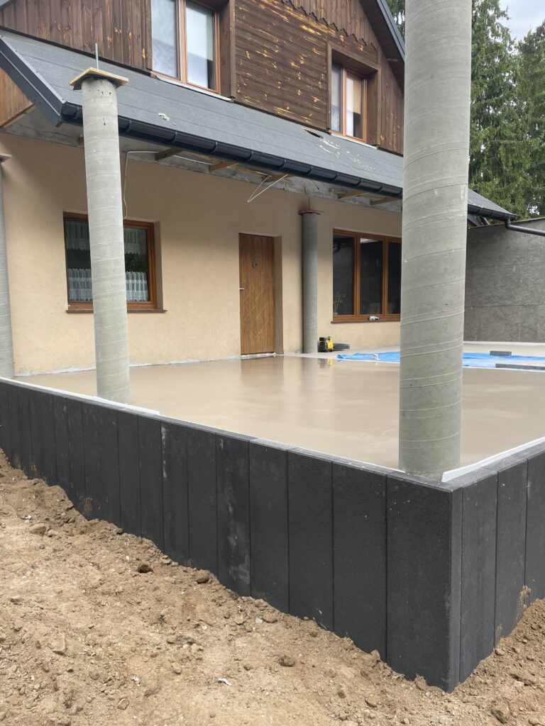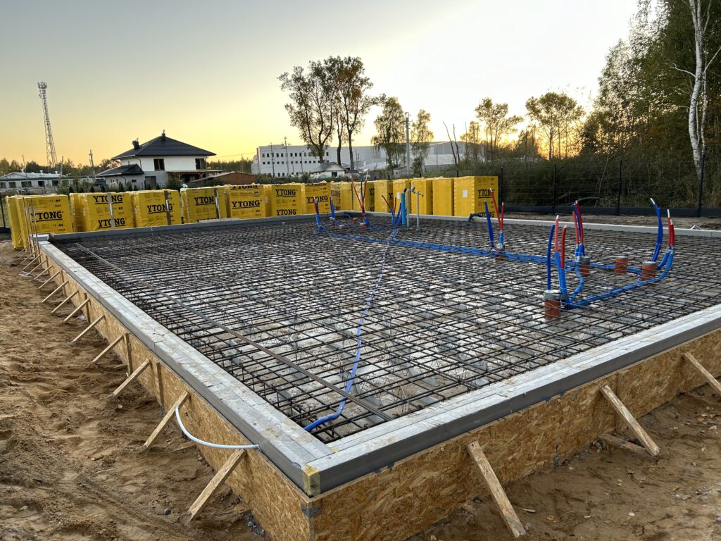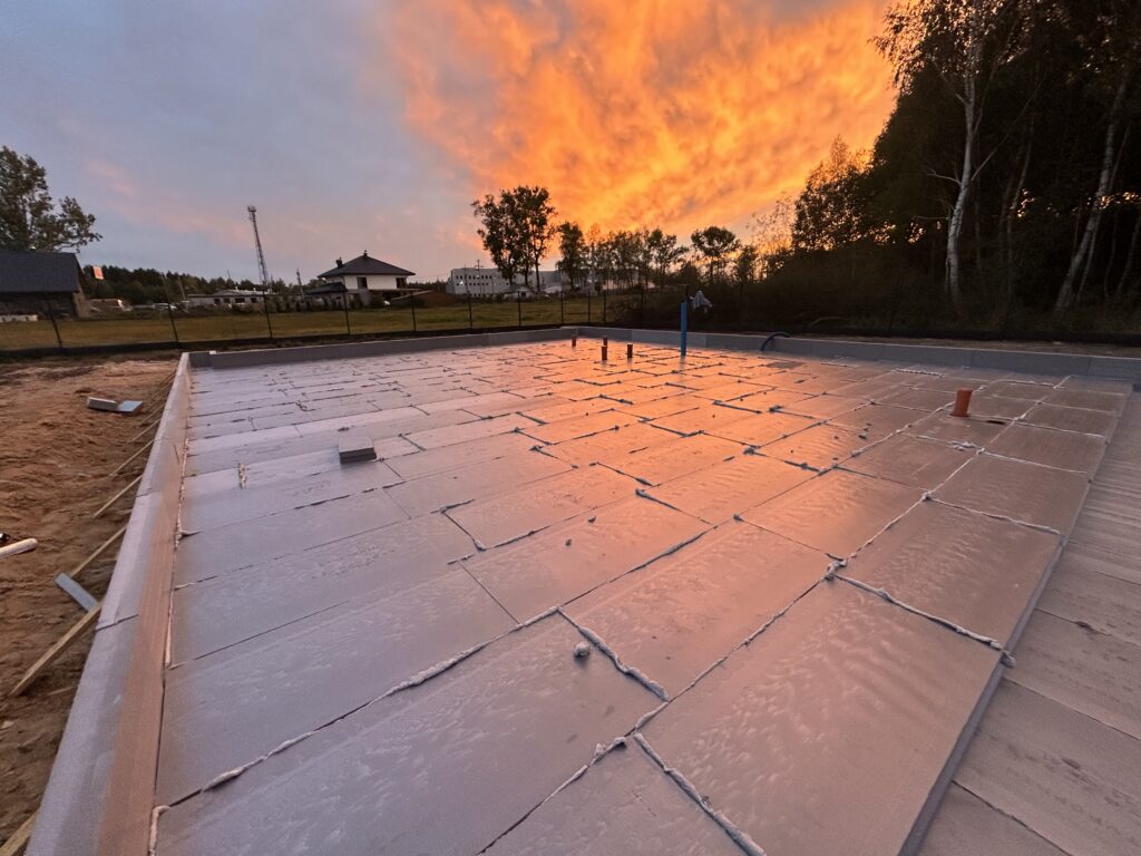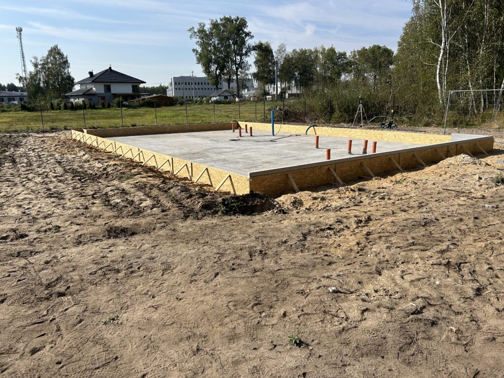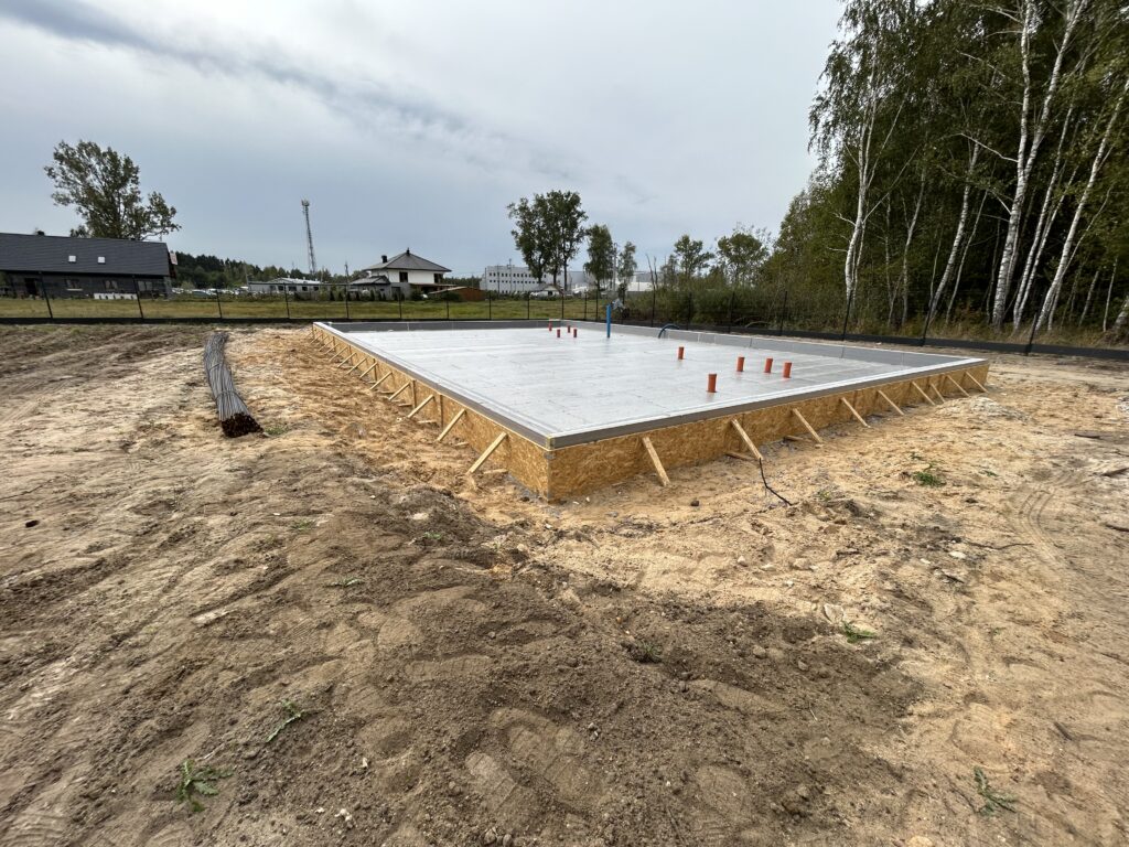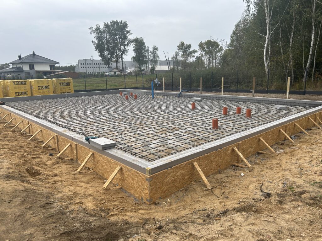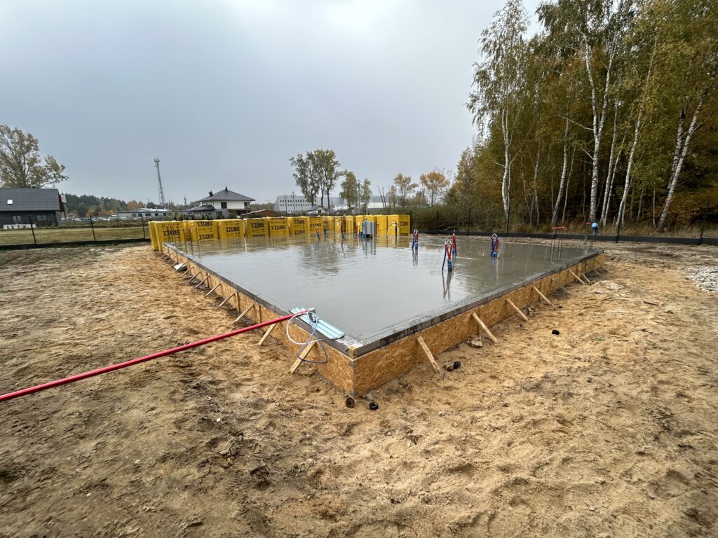 Szerokie ławy fundamentowe na niestabilnym gruncie, płyta betonowa