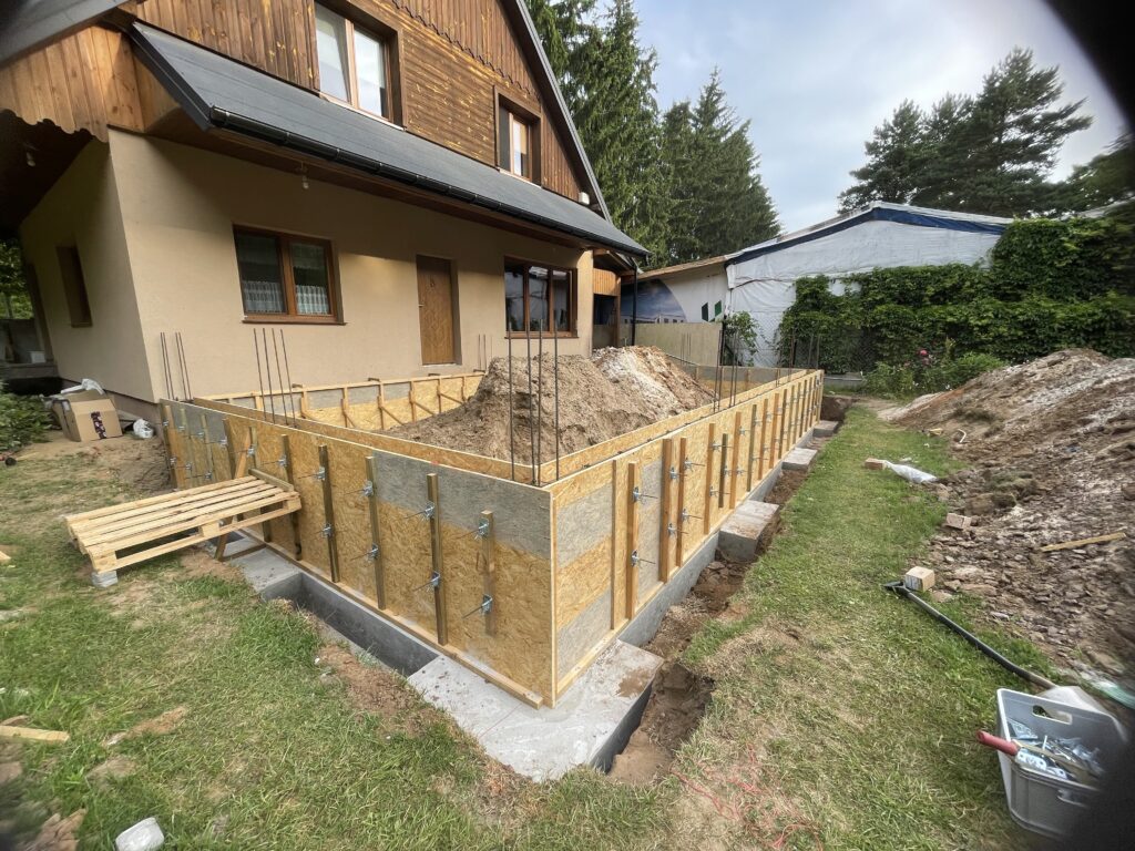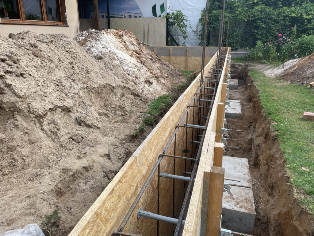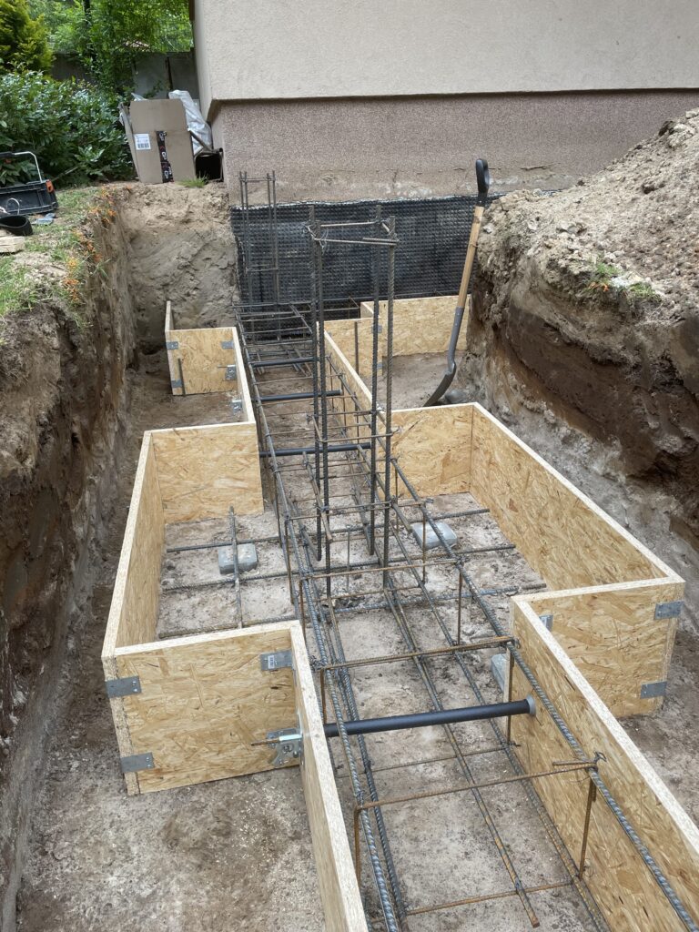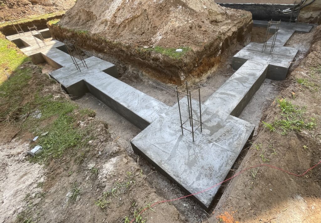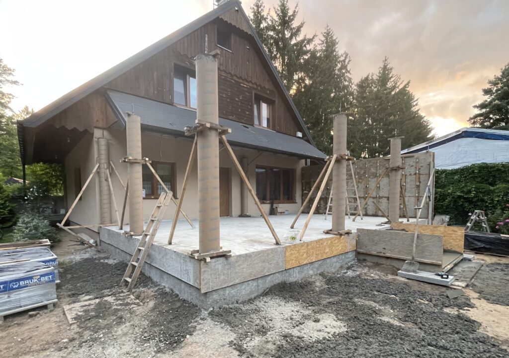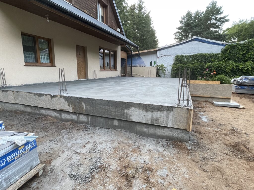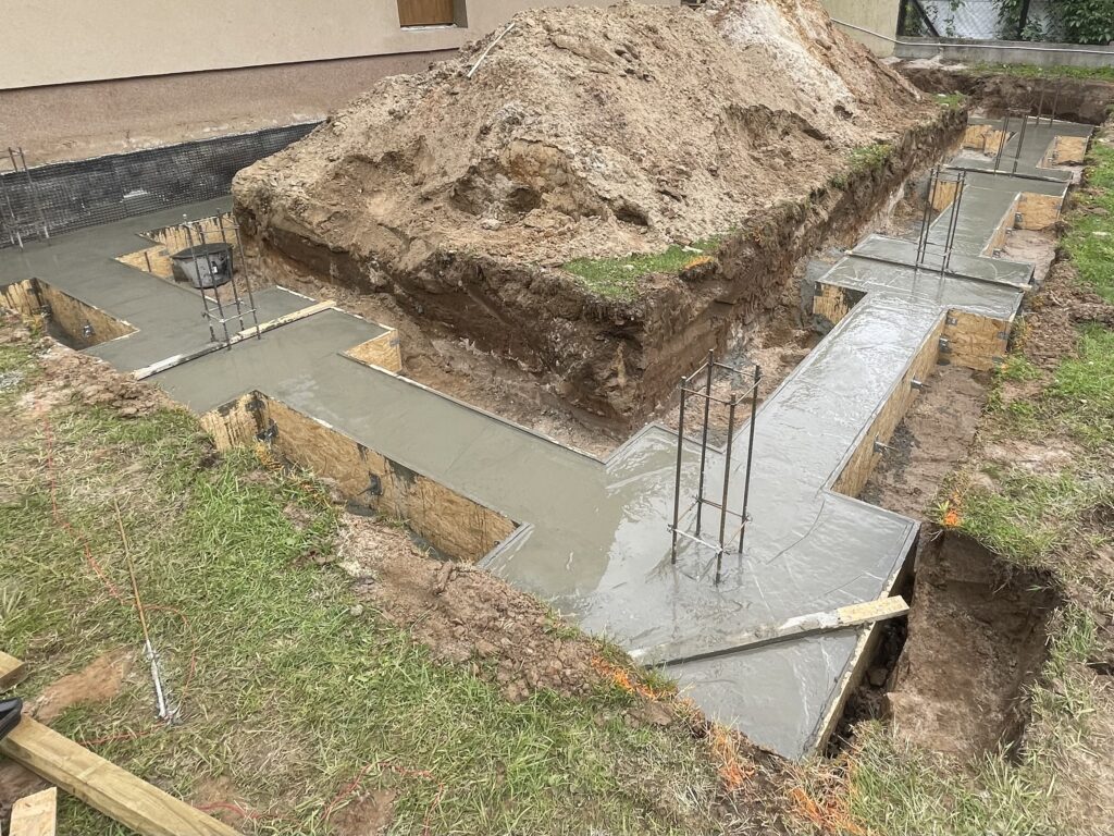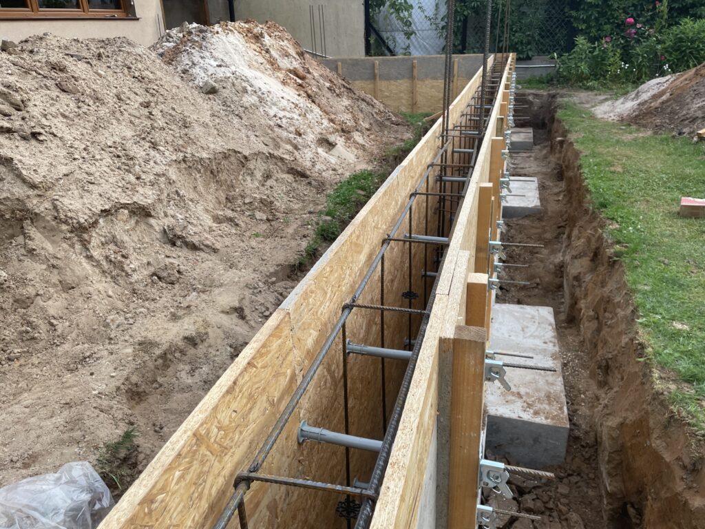 Szerokie ławy fundamentowe na niestabilnym gruncie, płyta betonowa