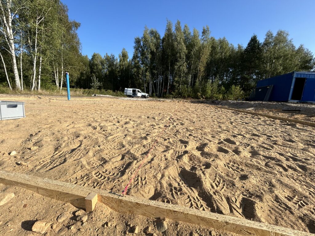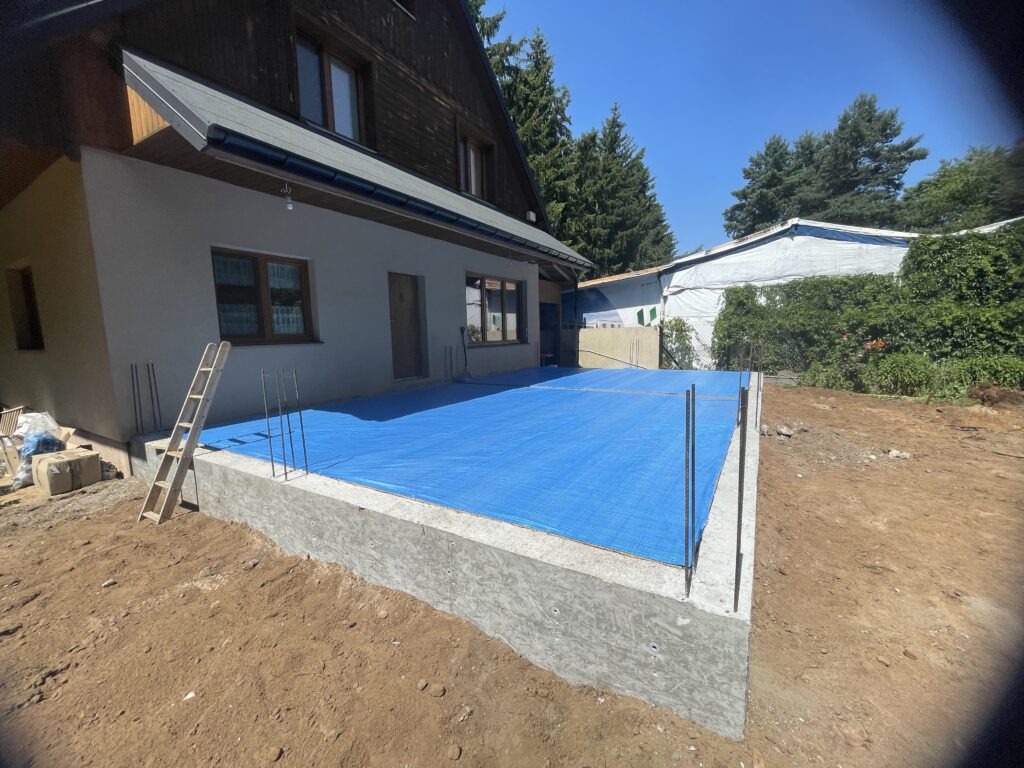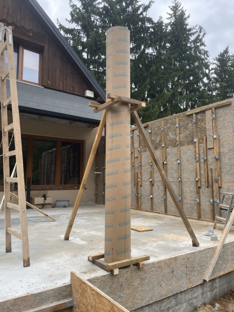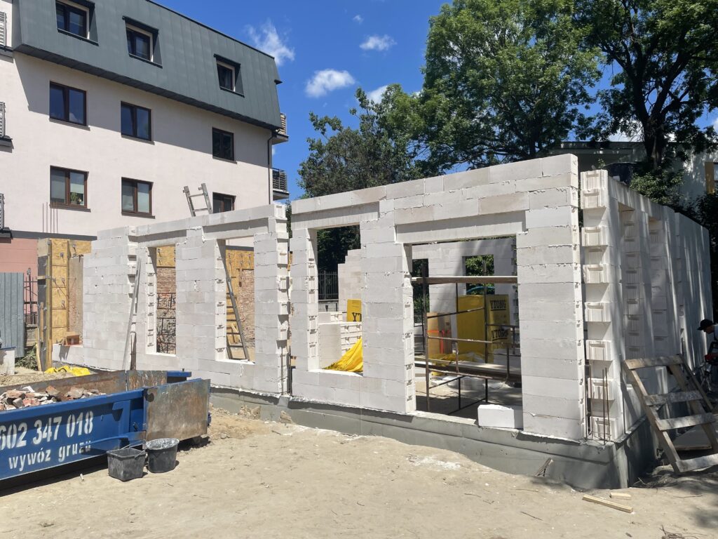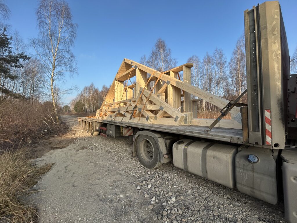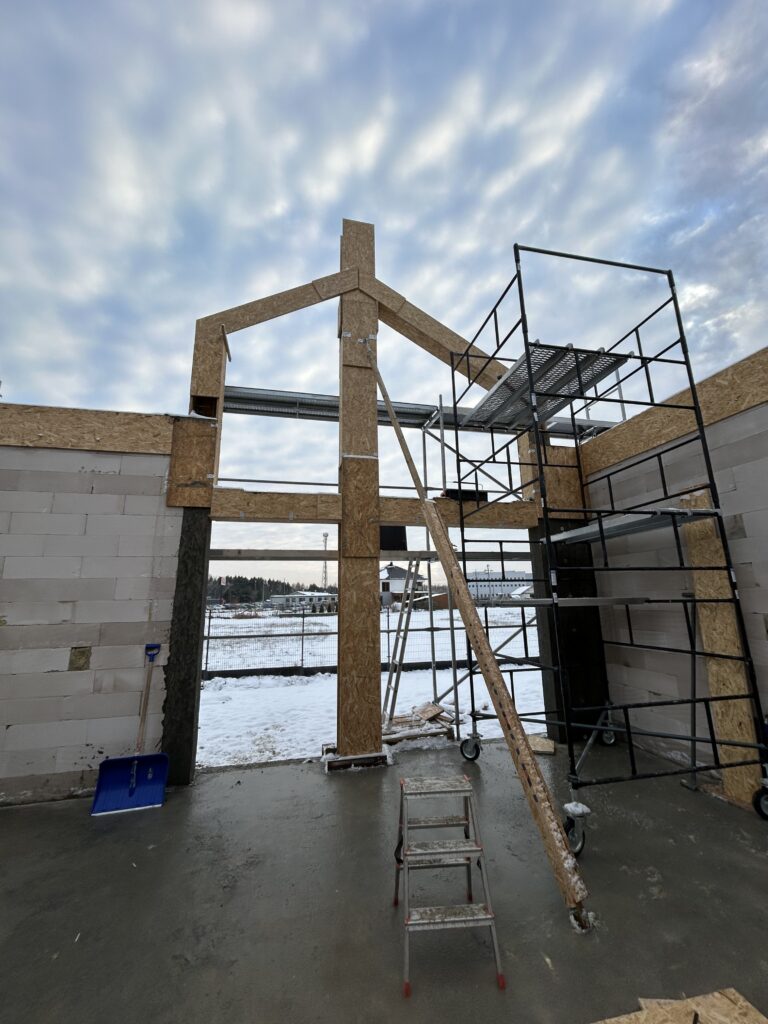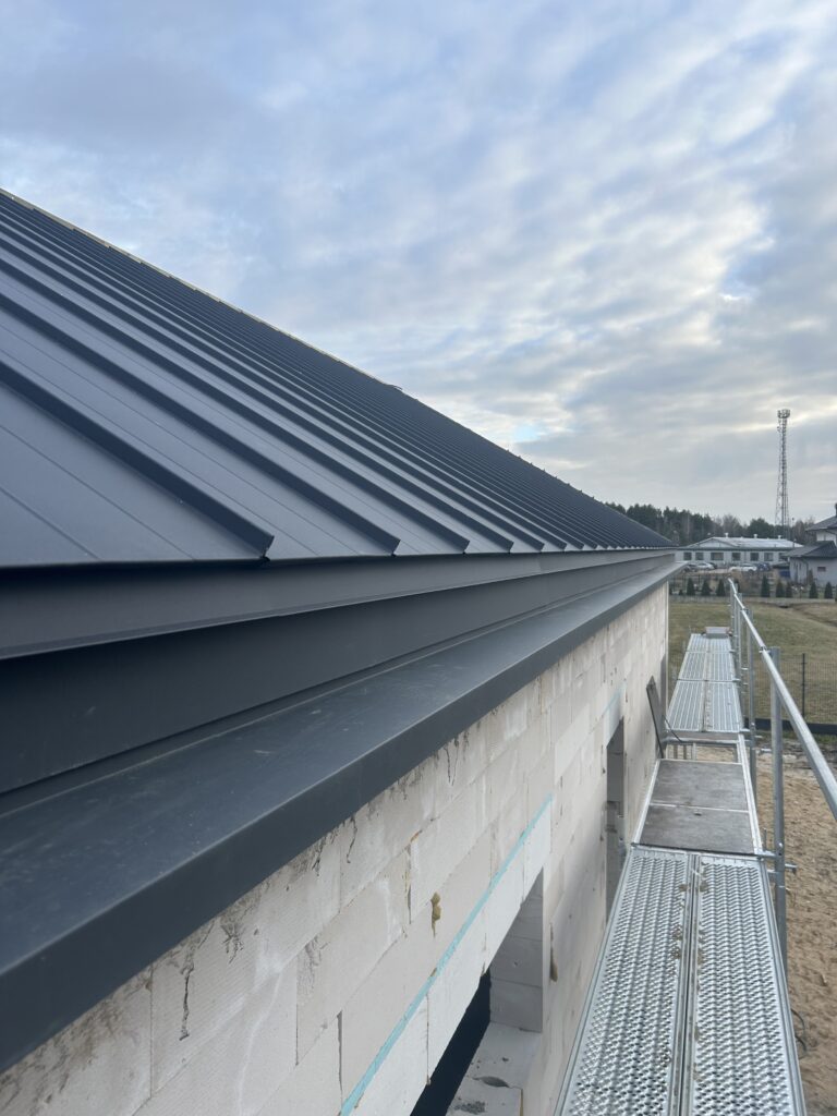 Ciepła płyta fundamentowa, więźba prefabrykowana, realizacja 6 m-cy stan surowy z dachem.
