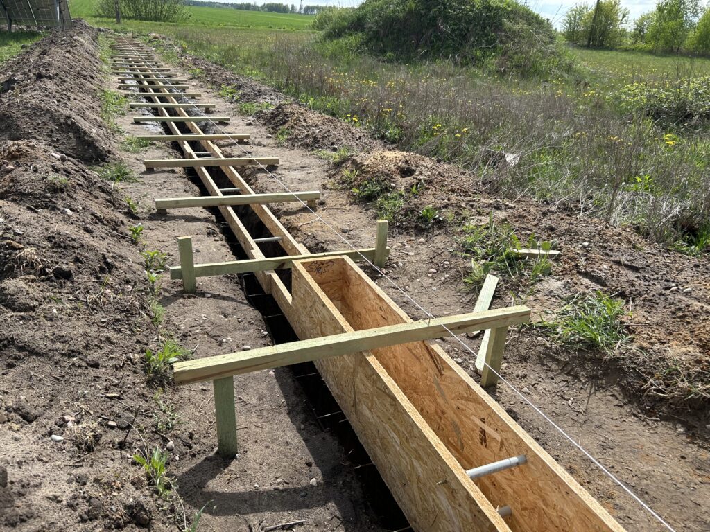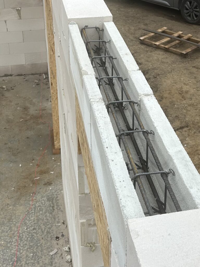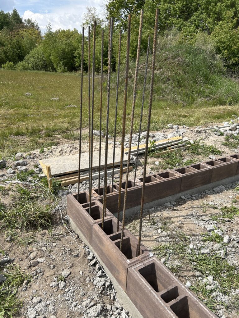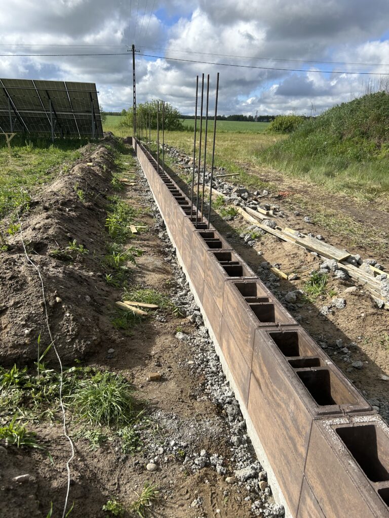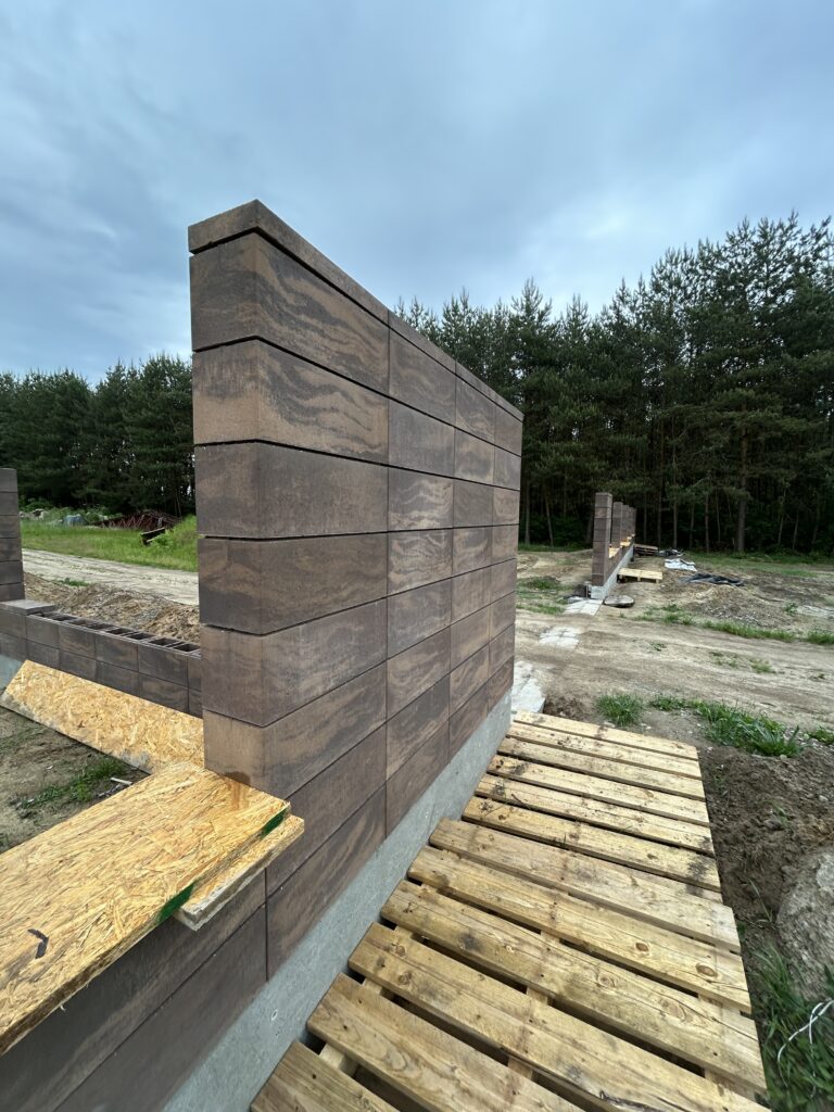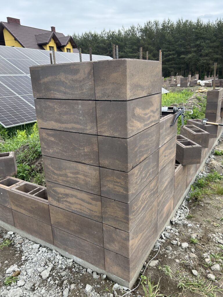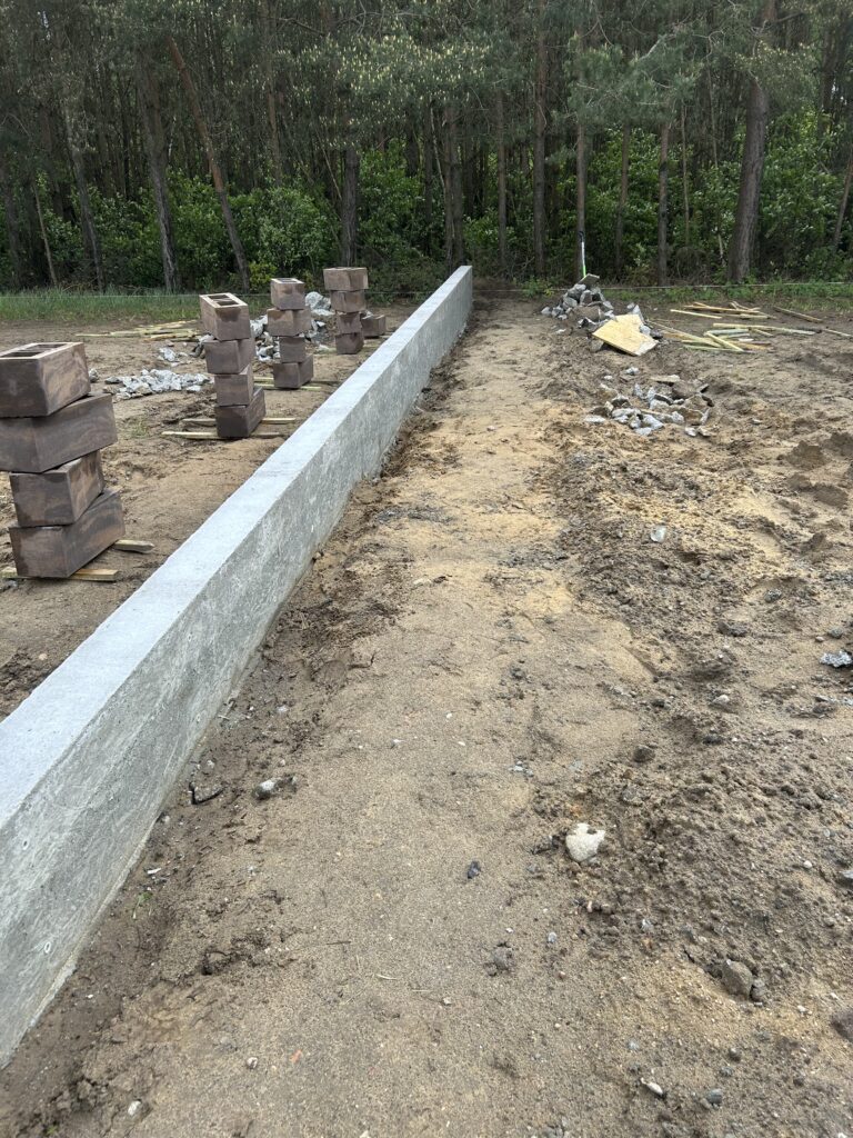 Fundament gł.80cm, zbrojony, szalowany górą, bloczki betonowe zalewane